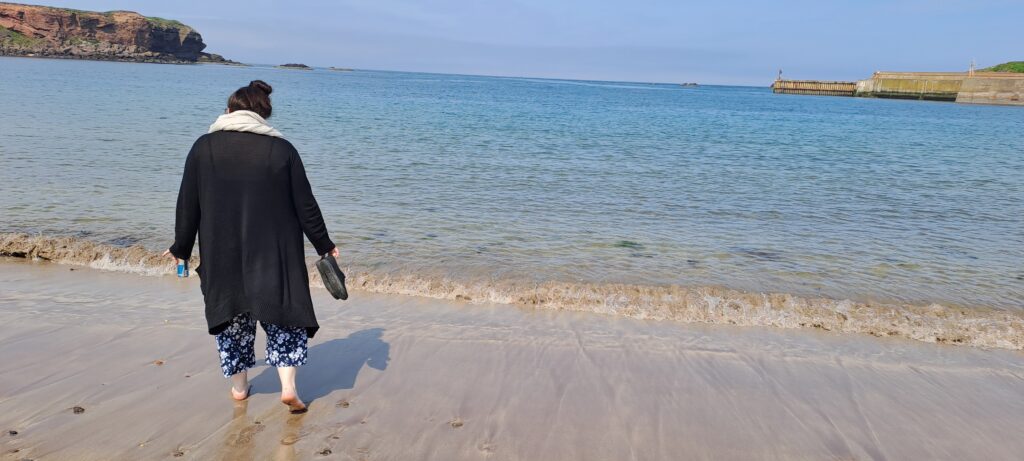 Unterwegs beschlossen wir kurzerhand uns einen Schnapper Meeresluft zu holen. Daher hielten wir in Eyemouth und machten einen Spaziergang am Sandstrand.