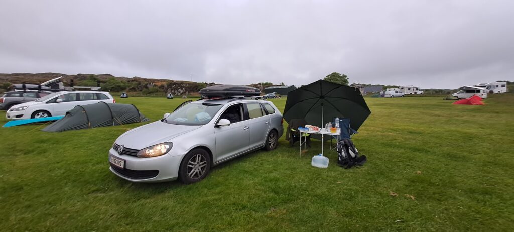 Wegen dem verlängerten Wochenende (Pfingsten) waren sämtliche Hotels, B+B’s, ja sogar Campingplätze ausgebucht. Als wir uns schon fast mit einem kleinen Fleckchen neben einer Waldzufahrt als Schlafplatz abgeben wollten, entschieden wir nochmal die letzte Motivation zu bündeln und riefen gefühlt sämtliche Campingplätze in der Gegend durch. Am Strand wurden wir dann, Gott sei Dank, fündig.