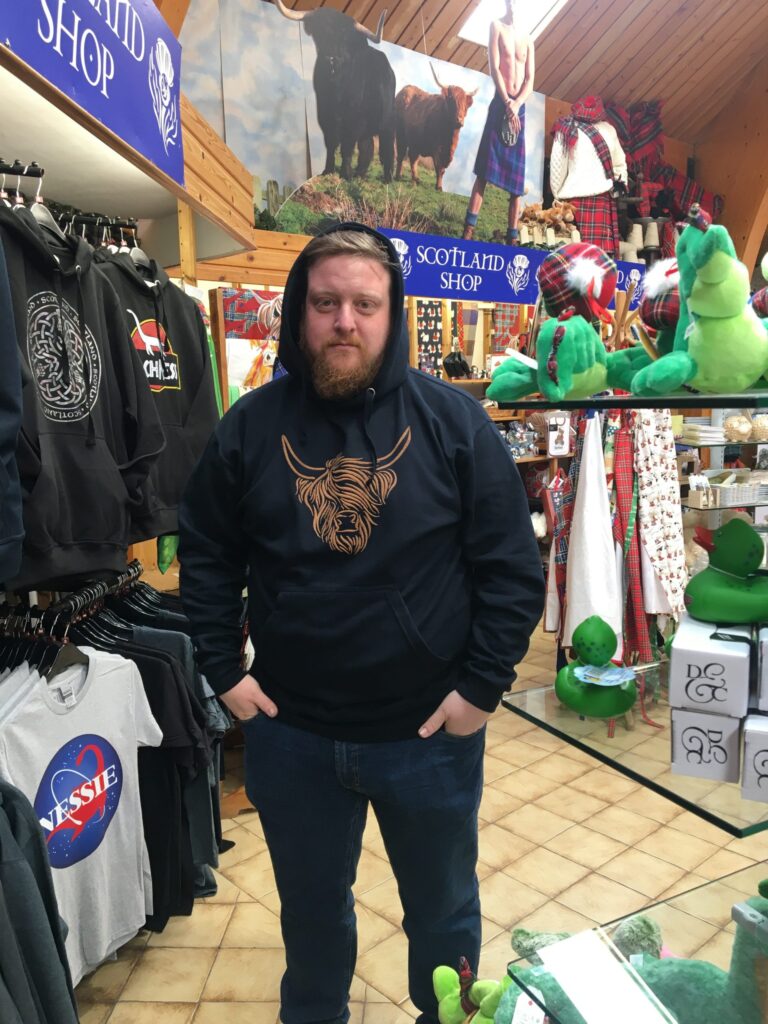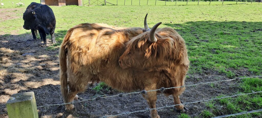 Nach einem Kaffee (mehr war nicht drin für mich) fuhren wir weiter Richtung Stirling, wo wir an einem Gehege mit Highlandrindern vorbeikamen. Dort gab es ein Cafe und einen Souvenirshop. Hier gönnten wir uns einen Toast zum Frühstück und machten ein Paar Fotos mit den flauschigen Vierbeinern. Ich als Highlandrind-Fan, shoppte mir einen Supporter Pullover 🙂