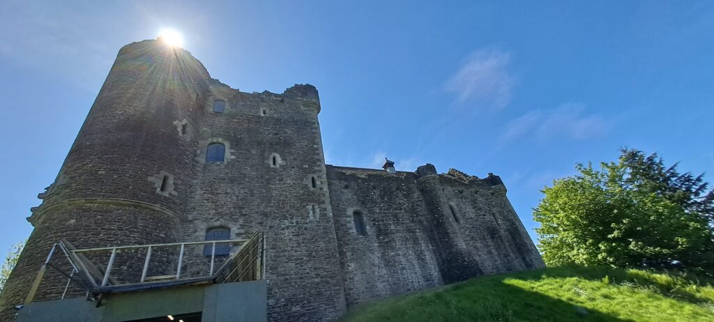 Nachdem sich Nathalie ausgiebig von den Kühen verabschiedet hatte, fuhren wir weiter. Nach ca. 20min erreichten wir dann Doune Castle. Das imposante Schloss, erbaut von Robert Suewart I – 1. Duke of Albany, kann für 10 Pfund besichtigt werden. Ein Audioguide ist im Preis inbegriffen und kann auf Wunsch mitgenommen werden. Terry Jones (Monty Python) höchst persönlich hat seine Stimme für den Guide zur Verfügung gestellt. Nathalie nahm keinen Audioguide…