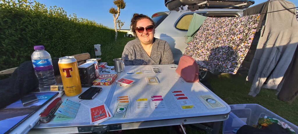 In der Abendsonne ließen wir den Tag bei Monopoly (Reiseedition) und Bier/Wein ausklingen.