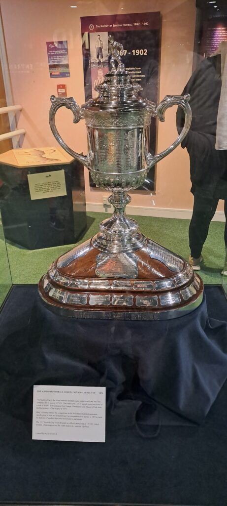 Danach gings ins dortige Museum. Dort wird die Geschichte des schottischen Fussballs – großteils interaktiv – vermittelt. Unsere, mittlerweile gut eingespielte, Museumsroutine war wieder aktiviert: Wir starten gemeinsam. Nathalie ist um einiges schneller, da ich mir alles genau durchlese. Nathalie wartet im Auto auf mich.